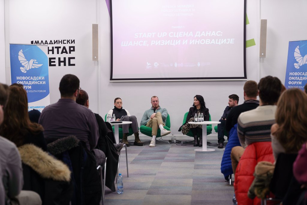 Na prvoj panel diskusiji „Start up scena danas: šanse, rizici i inovacije” govorili su Dragana Jovčić, Nenad Iđoški i Aleksandar Ivanović koji su sa prisutnima podelili svoje početke, izazove sa kojima su se suočili, ali i prilikama koje su mladima danas dostupne na tržištu rada.